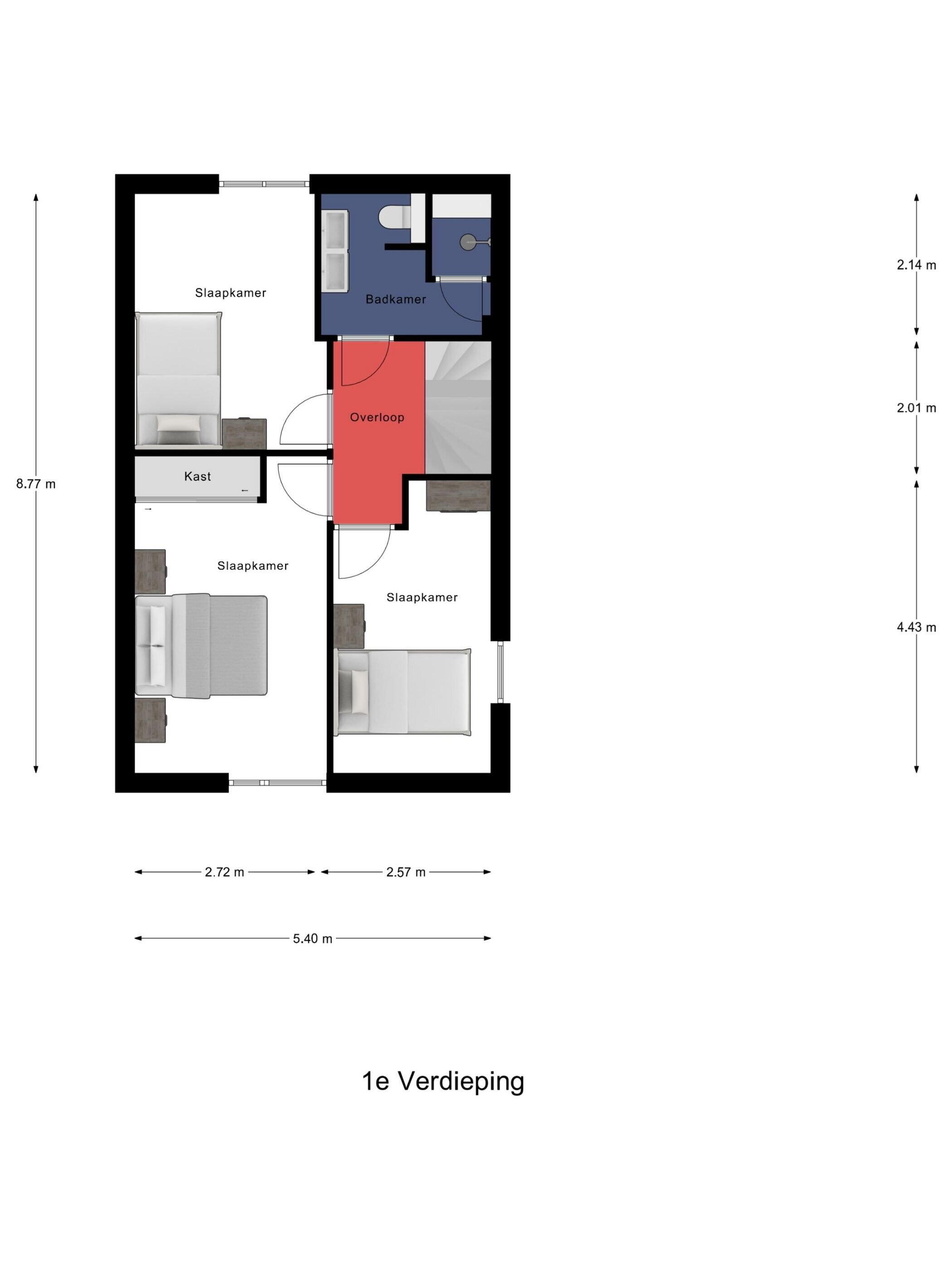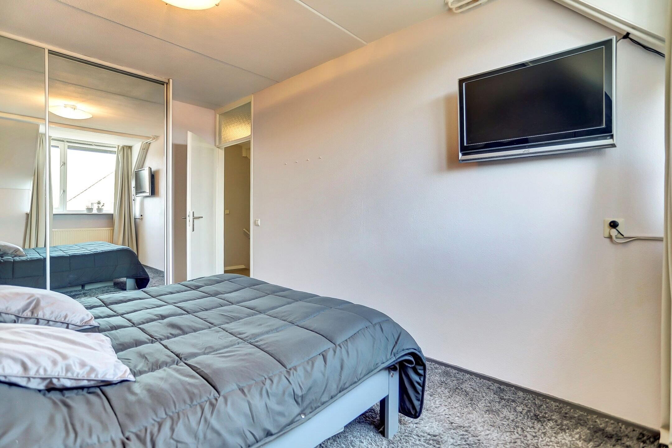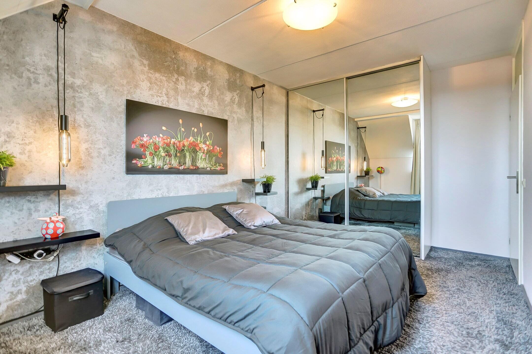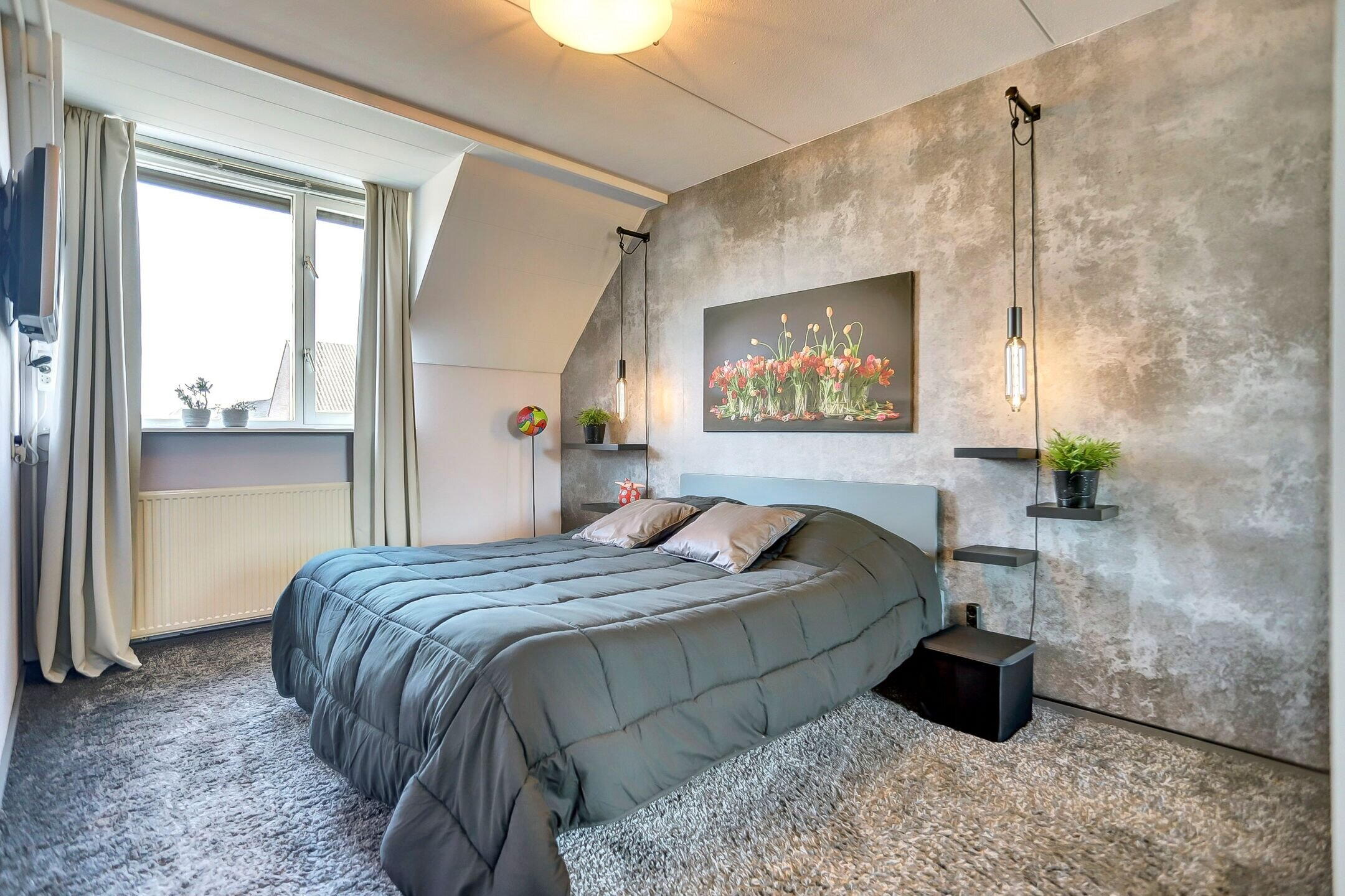 Op de eerste verdieping bevinden zich drie ruime slaapkamers. De hoofdslaapkamer ligt aan de voorzijde en is voorzien van een dakkapel met draairamen en een zonnescreen waardoor het er in de zomer heerlijk koel blijft. Een vaste kast met twee schuifdeuren voorzien van spiegels biedt volop bergruimte en de vloerbedekking zorgt voor een warme en comfortabele uitstraling.