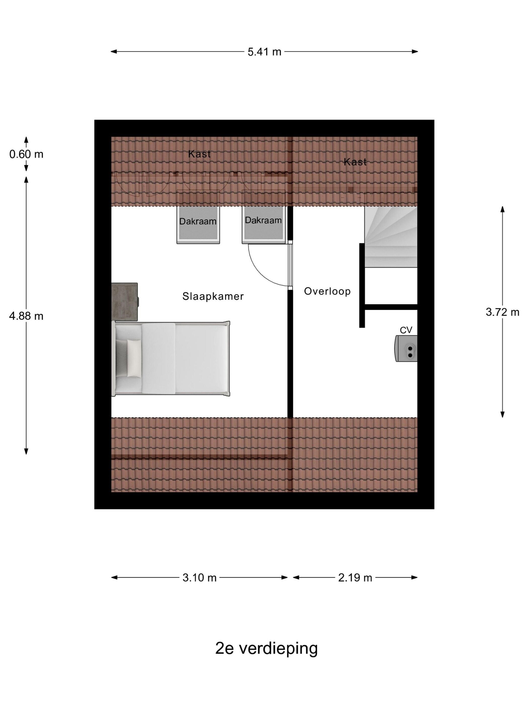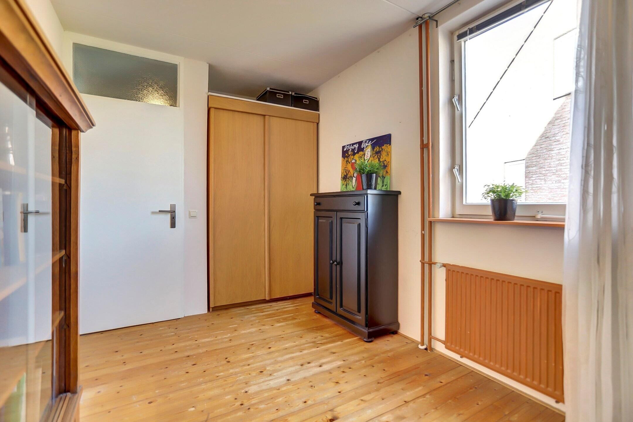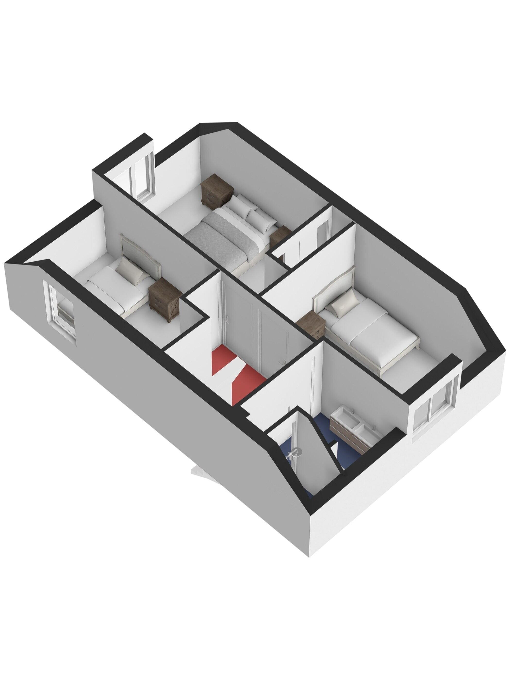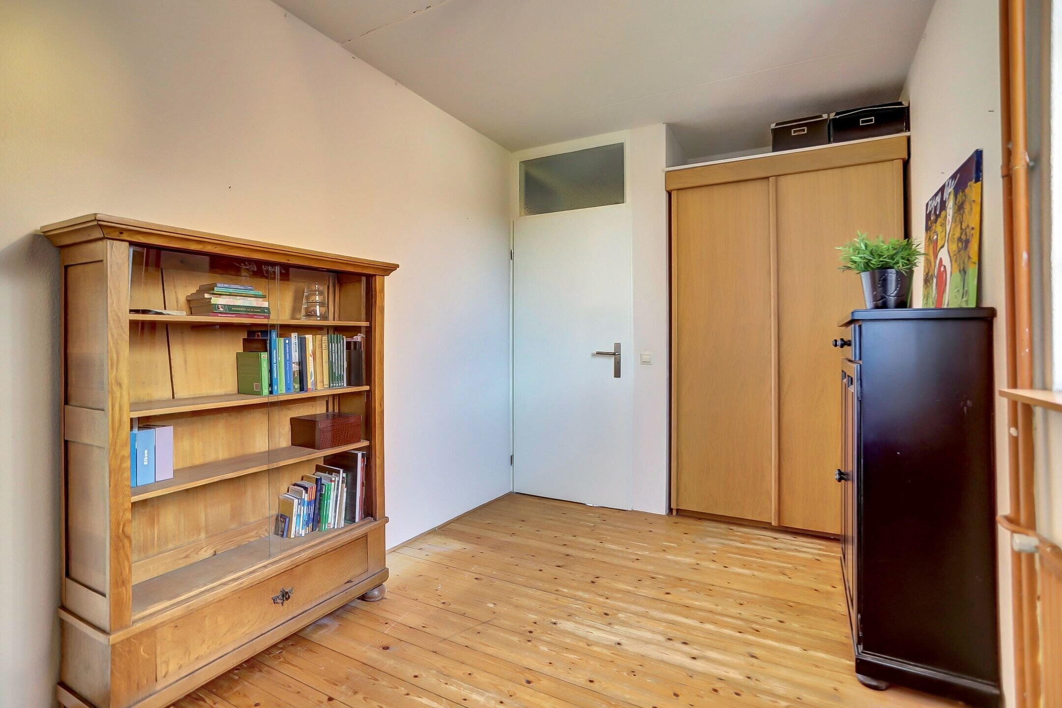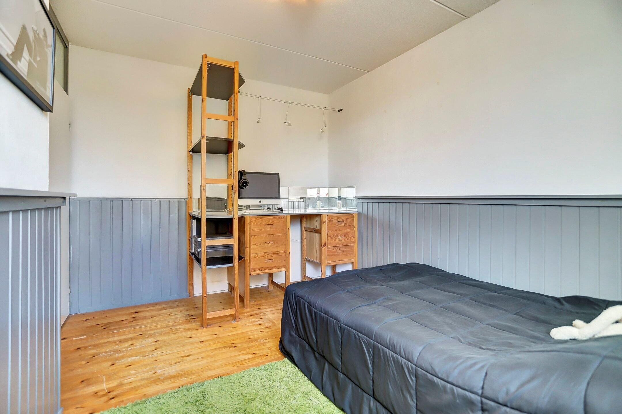 Op deze verdieping is ook een vierde slaapkamer aanwezig, een fijne en lichte kamer dankzij de twee Velux-dakramen die zijn voorzien van rolluiken en horren. Het vaste bureau maakt de kamer ideaal als werk- of studeerruimte waarbij de beschikbare ruimte optimaal wordt benut. Een bijzonder detail is de sterrenhemel halverwege het plafond die een sfeervol element vormt dat niet alleen zorgt voor een leuke uitstraling in de kamer maar ook voor extra bergruimte in de nok.