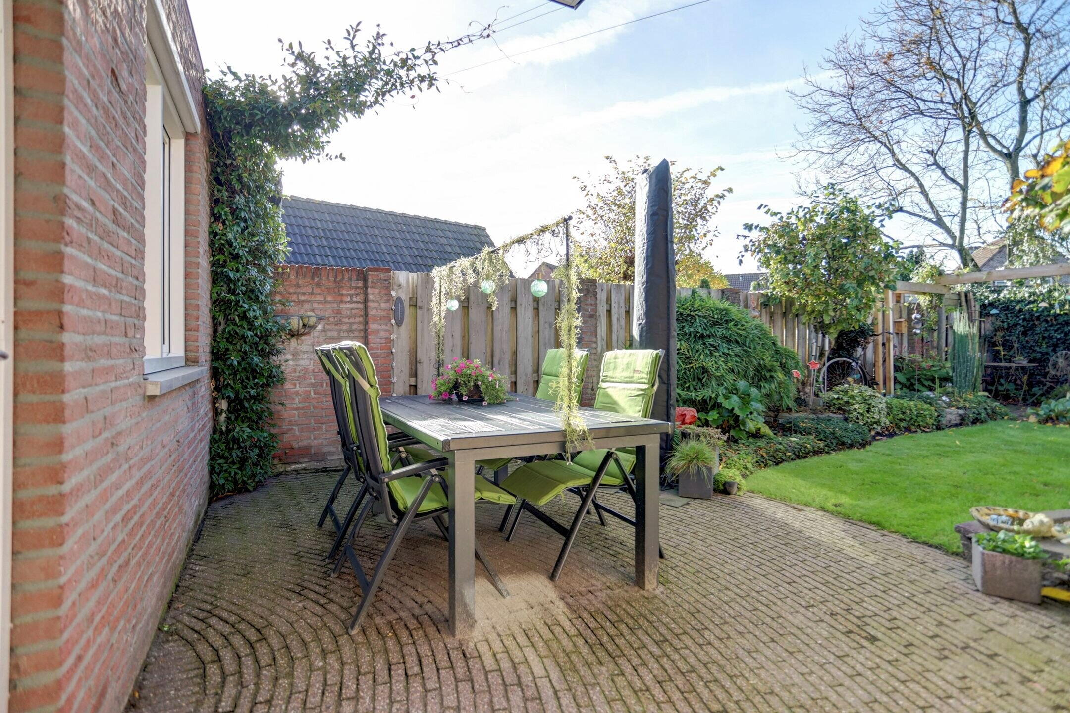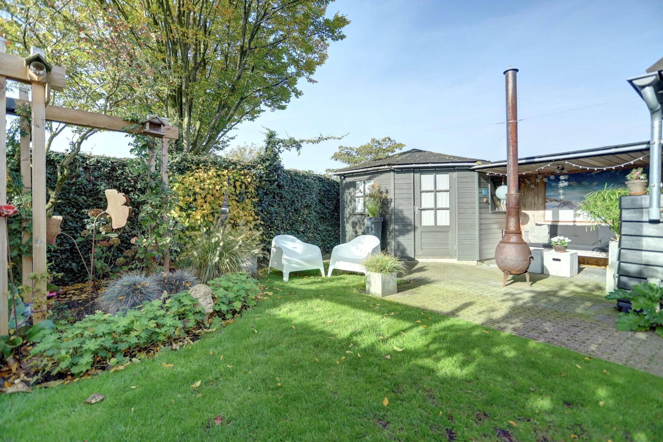 De achtertuin is een heerlijke plek om buiten te genieten. Direct achter de woning ligt een ruim terras, perfect voor een lounge- of eethoek in de zon. Achter de garage bevindt zich een tweede terras met overkapping waar je ook bij minder mooi weer lekker buiten kunt zitten. De tuin is fraai aangelegd met een gazon en rondom borders met volwassen beplanting waaronder een hazelaar en bamboe, wat zorgt voor een groene en natuurlijke uitstraling. De tuin is volledig omheind wat zorgt voor privacy en veiligheid en heeft een vrije achterom via de garage. Bovendien zijn er meerdere stopcontacten en buitenverlichting aanwezig, ideaal voor wie graag klust, tuiniert of ’s avonds nog even buiten wil zitten.