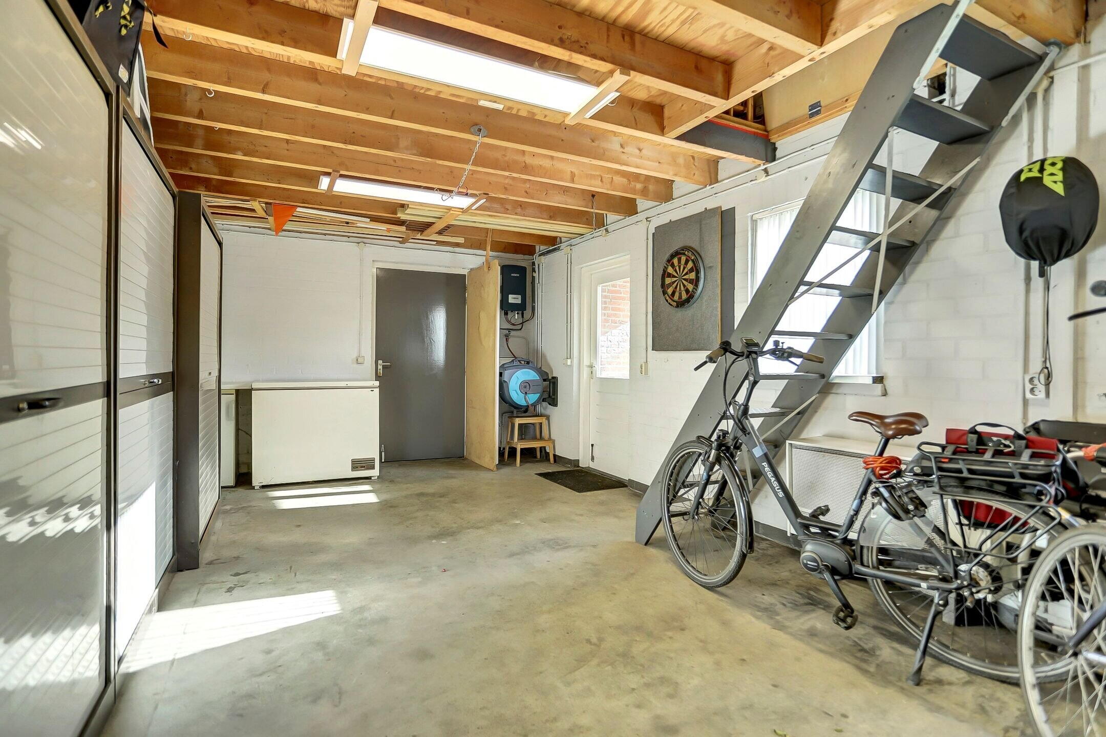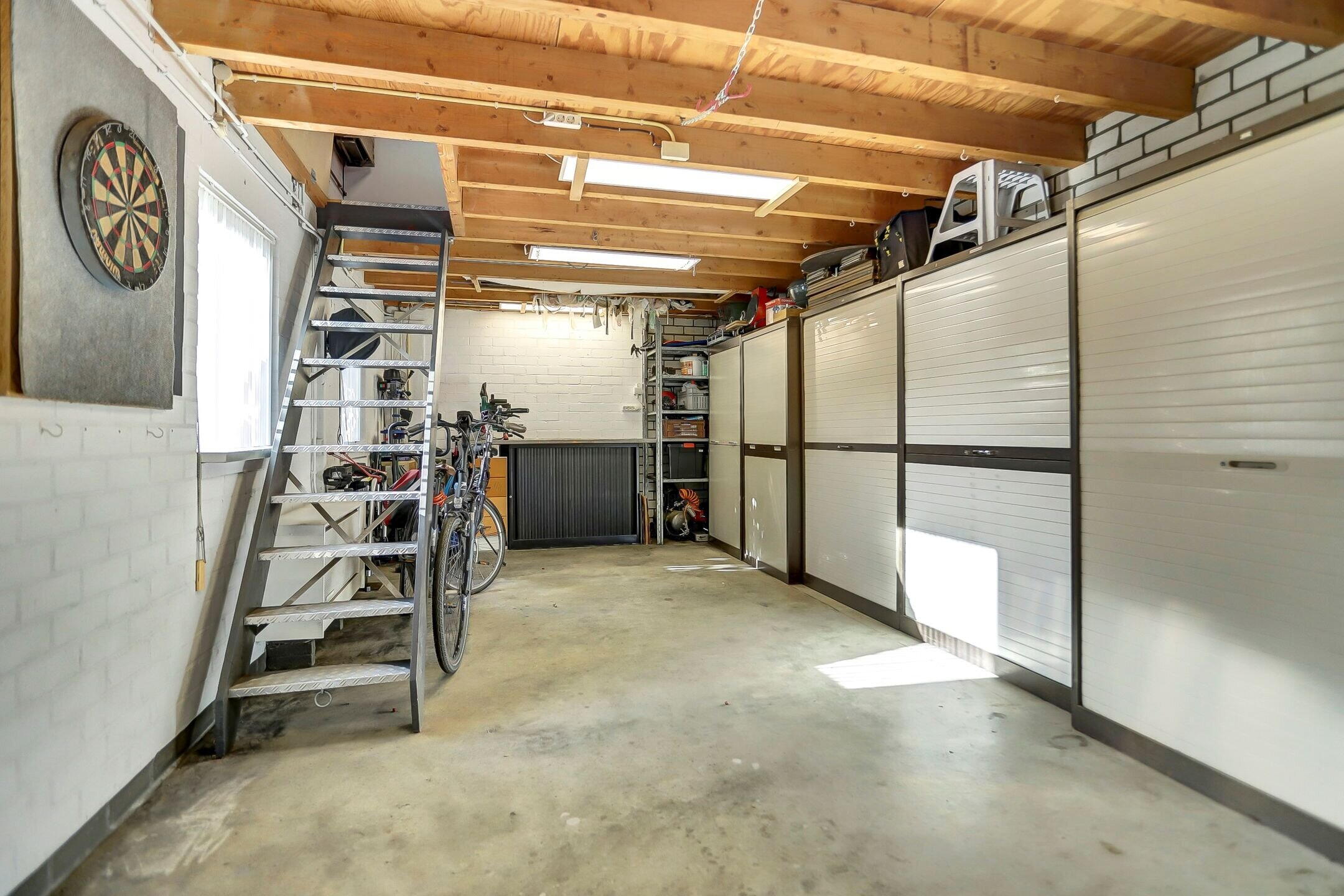 De woning beschikt over een ruime garage die via de tuin te bereiken is of via de oprit. De garage is ideaal voor het stallen van fietsen of motors maar leent zich ook uitstekend als hobby- of werkruimte. Via een vaste trap is de verdieping boven de garage bereikbaar, waar extra hobbyruimte of opbergruimte beschikbaar is perfect voor seizoensspullen, gereedschap of bijvoorbeeld sportmateriaal. In de garage hangt ook de aansluiting van de zonnepanelen die op het dak liggen. Aan de voorzijde ligt een oprit met carport waardoor je altijd droog kunt in- en uitstappen en voldoende parkeergelegenheid hebt op eigen terrein. Op de oprit staat ook een laadpaal voor een elektrische auto met een laadvermogen van 11kw.